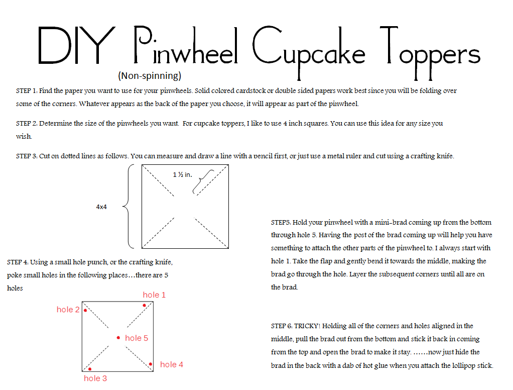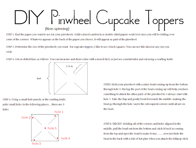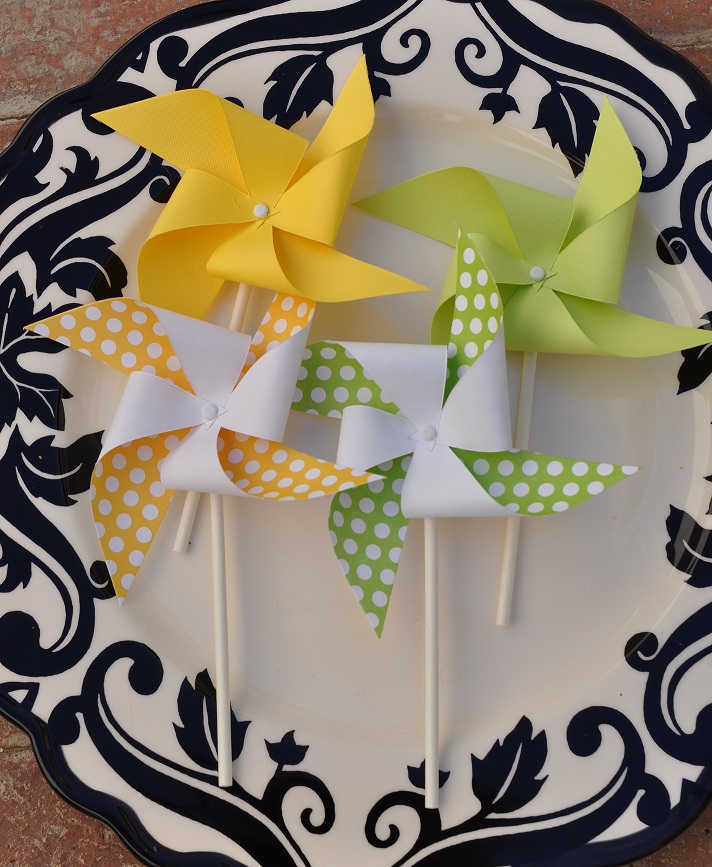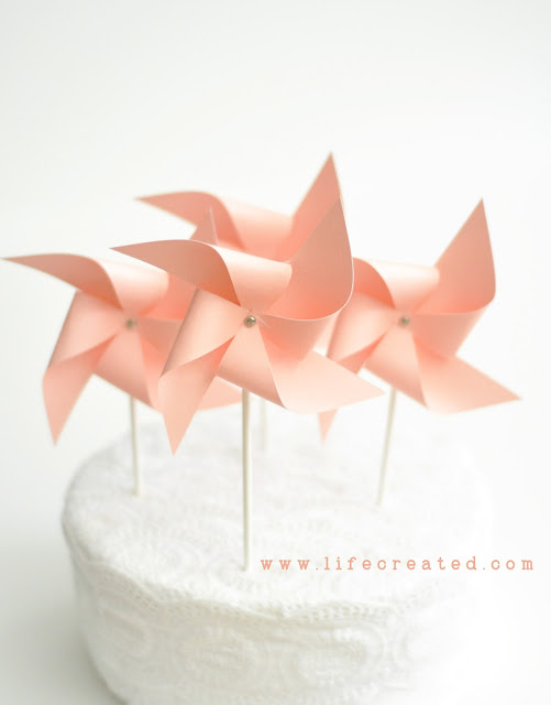 Paper pinwheels are very easy to make and look amazing on cupcakes, cakes, in bouquets, etc.