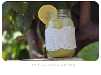 During that venture, I accumulated a lot of things, like this adorable lace trim I got YARDS of for wedding invites....I decided to make it useful for my mason jar glasses I am in process of collecting as drinking glasses