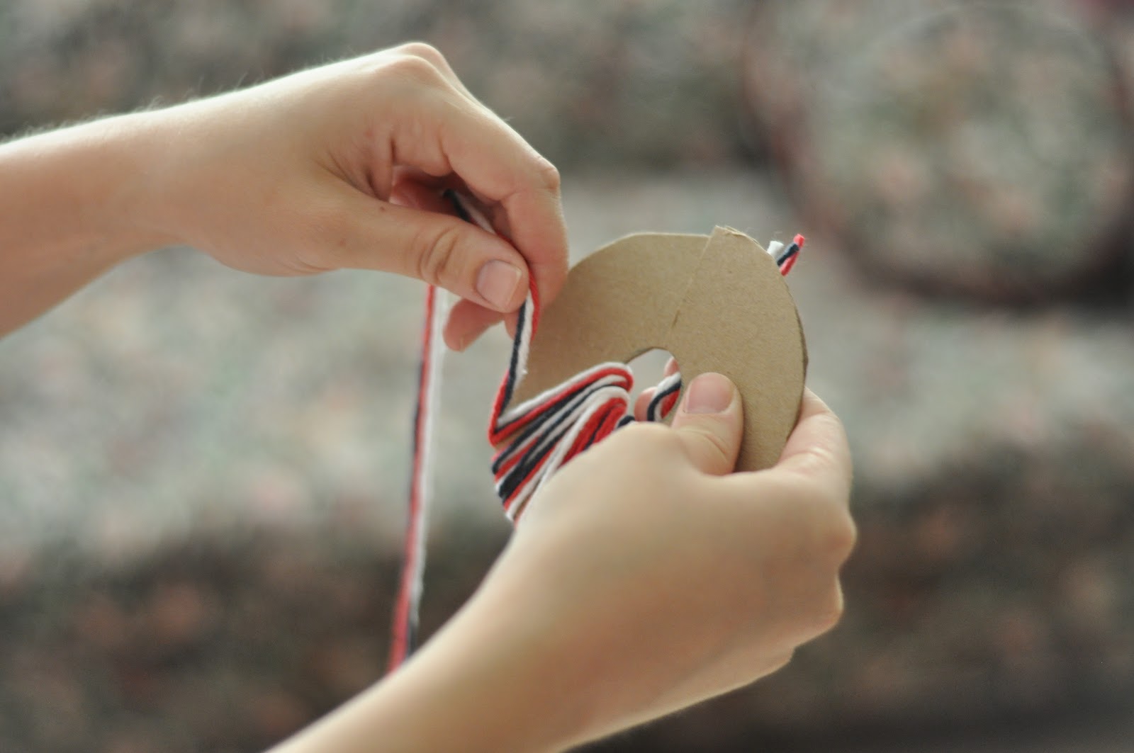 1)Take the yarn and cut 6 long pieces (however long you want your garland to be)