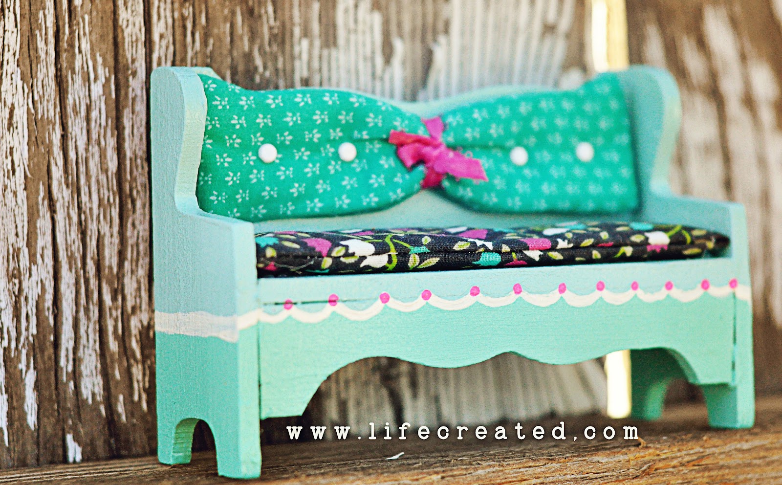 We've slowly been making progress on our dollhouse furniture, most recently finishing the long bench. We have several other pieces in progress, but I have to go slowly since my 3 year old is a busy bee! Also, she got burned out on projects for a few days, and I never want to force her to do projects.