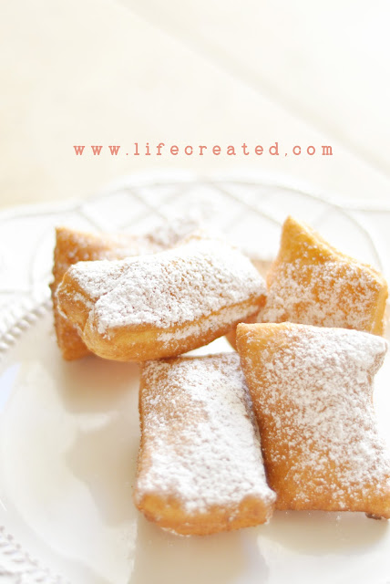 Beignets are like French doughnuts....and this recipe feeds a small army, so half it if you want!