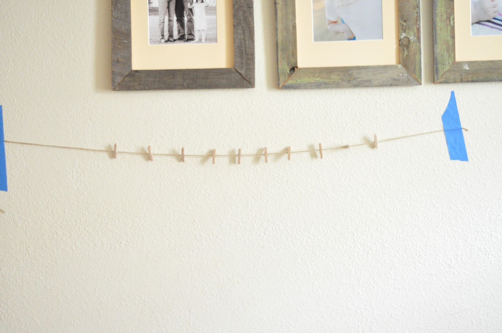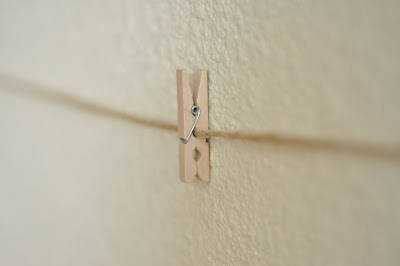 2) Attach mini clothespins or tiny binder clips along your line for your garland to hang from.